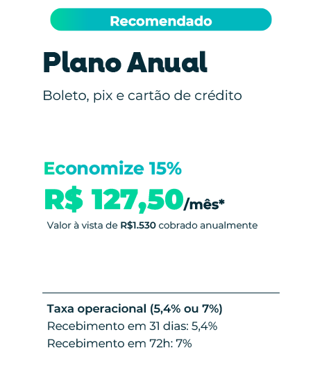 A primeira parcela do boleto vence 30 dias corridos após a assinatura do contrato.